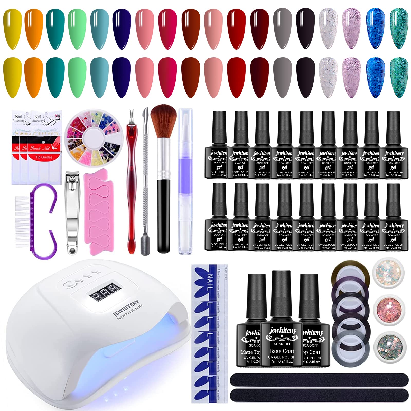 Amazon Com Jewhiteny Gel Nail Polish Kit With Uv Led Light 18 Colors Gel Polish Set Base Gel Top Coat Starter For Diy Home Manicure Halloween Gel Nail Kit Gift For Women
